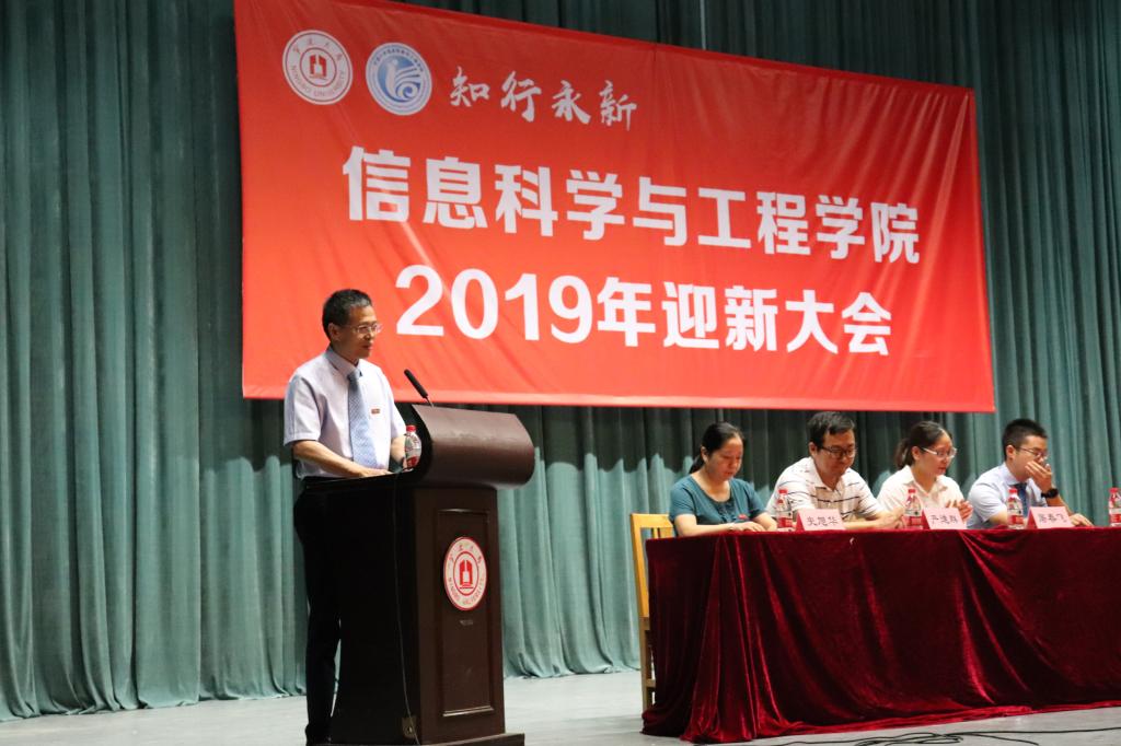 的师资队伍、学科建设以及学生培养等方面展开了介绍,同时,希望全体新“信息人”要重视加强自身的品德修养,也要有一颗进取之心,知行统一、学以致用。在学习方面,要注重学习的方式,处理好各方面的关系。而在处事方面,要学会合作,提升情商。