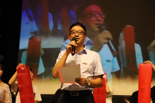 党委书记林奇凯为学生们送去了“立志、努力、为公”的寄语,让在座的每一位同学深受感动。在晚会的游戏“神秘箱”中,由同学们与晚会赞助商得力集团人力资源部经理董鑫楠先生、两位班主任老师——李翔宇和高琳琳一起完成,引来场下阵阵掌声。现场同时也抽取了三位幸运观众,送上了由得力集团提供的精美礼品。
