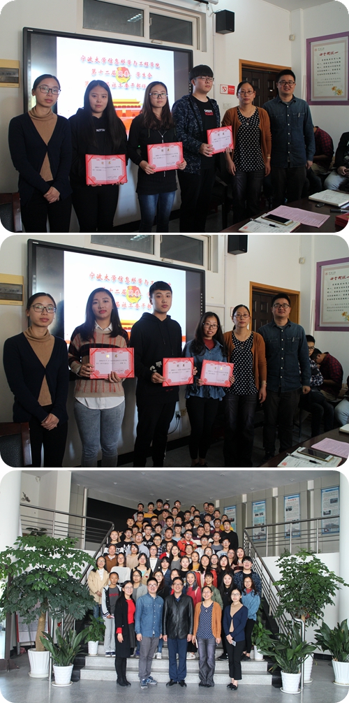 党委副书记屠春飞书记、学工办主任孙文静老师、团委书记汪小静老师、团委副书记宋佳敏老师以及第十二届全体团学社骨干。