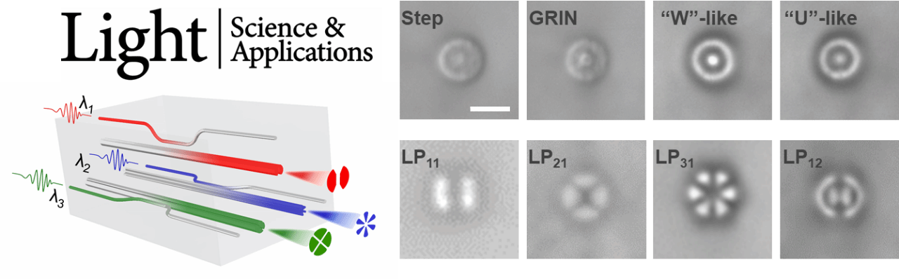 近日,抖音黑料 Light+X团队钟理京博士和浙江大学邱建荣教授等在3D光子芯片的飞秒激光制造领域取得系列重要进展。论文以第一作者/通讯作者身份发表分别在光学领域顶尖期刊 Light: Science & Applications和材料学领域顶尖期刊 Advanced Materials上。飞秒激光直写技术是一种同时具备三维(3D)加工能力和纳米精度的快速制造技术,被广泛应用于精密工业加工和前沿科学研究。然而,无论是基于传统的平面光刻技术还是当前的飞秒激光直写技术,对波导折射率分布的精细控制仍然遥不可及。针对这一长期存在的光学工程难题,钟理京等在飞秒激光制造渐变折射率和任意可变截面的3D光子光路上取得重要突破:研究团队通过开发一种精细的飞秒激光直写方法,提供了一种在3D集成光子光路中实现超宽带、低色散耦合的有效途径,与传统的平面光波导器件相比,在片上传输和操纵强非线性激光脉冲方面展现出压倒性的优势,使其成为构建下一代复合集成3D光子光路的有力工具。该研究成果以“Precise mode control of laser-written waveguides for broadband, low-dispersion 3D integrated optics”为题,于2024年6月4日在线发表在光学领域顶尖期刊 Light: Science & Applications上。钟理京博士为第一通讯作者和共同第一作者,邱建荣教授为最后通讯作者。此外,Light+X团队还与之江实验室、华南理工大学和意大利比萨大学等研究人员合作,采用飞秒激光直写技术,在包括YAG、LuAG、LiNbO3等稀土掺杂或不掺杂的多种单晶晶体中,开发出一系列低损耗、可变截面的无源和有源光波导集成器件。该研究成果以“3D Laser Writing of Low-Loss Cross-Section-Variable Type-I Optical Waveguide Passive/Active Integrated Devices in Single Crystals”为题,于2024年5月8日在线发表在材料学领域顶尖期刊 Advanced Materials上。钟理京博士为共同通讯作者,邱建荣教授为最后通讯作者。