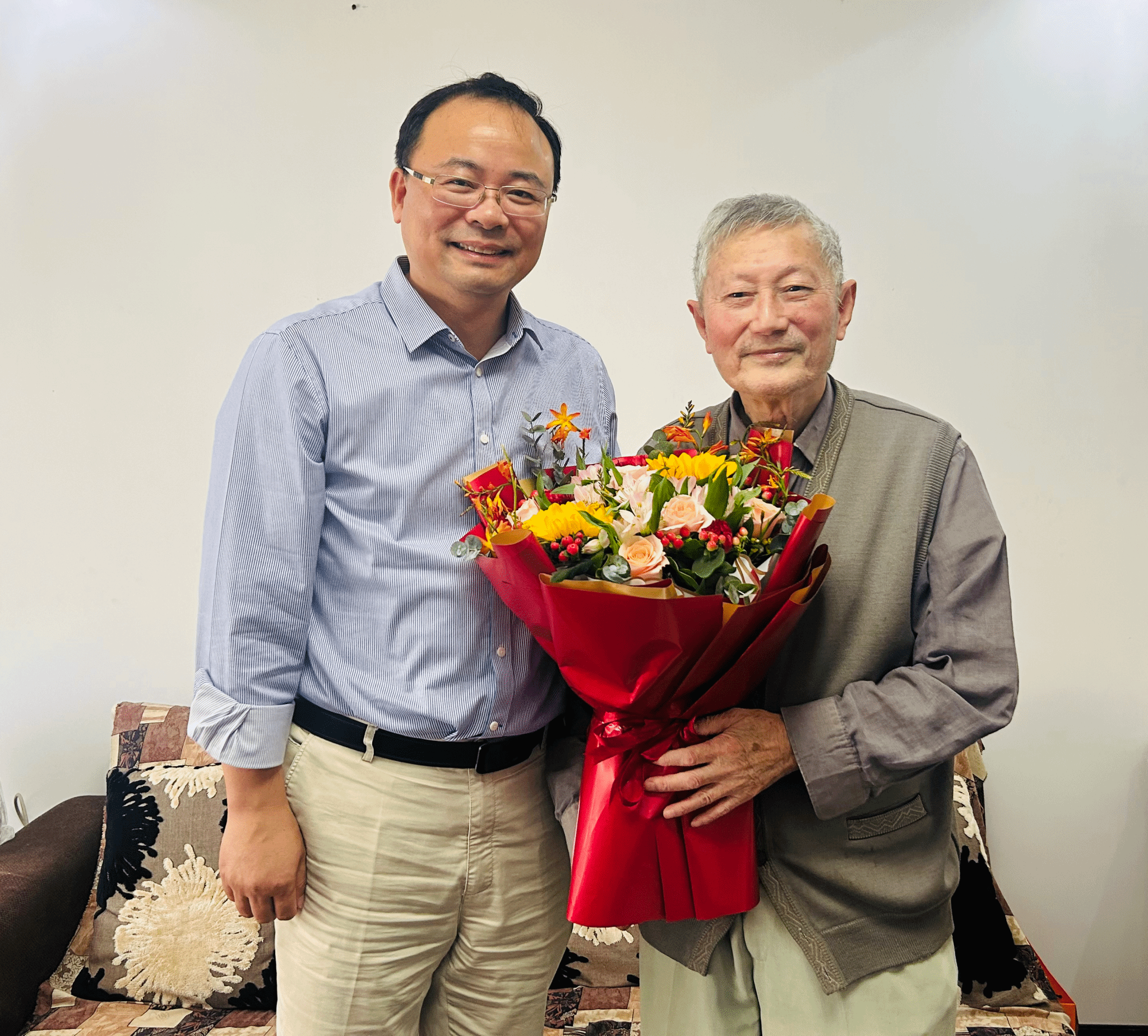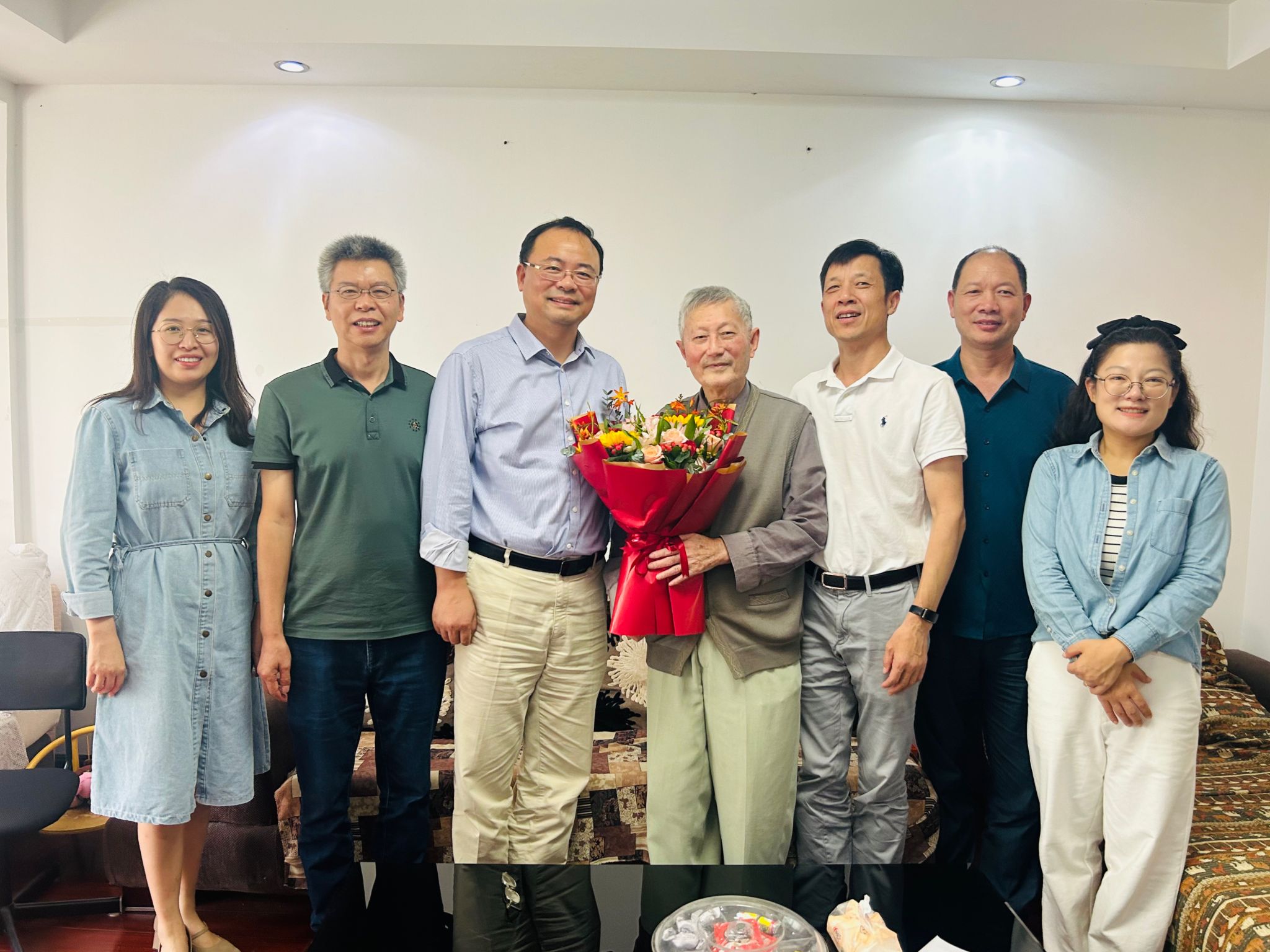 宁大花园喜气洋洋,耄耋老人精神矍铄。“祝您节日快乐!也祝您生日快乐。”李力行教授今年90岁,刚过大寿不久,身体硬朗、乐观豁达,王伦耀十分欣慰,关切询问他的日常生活、健康状况,感谢他为抖音黑料