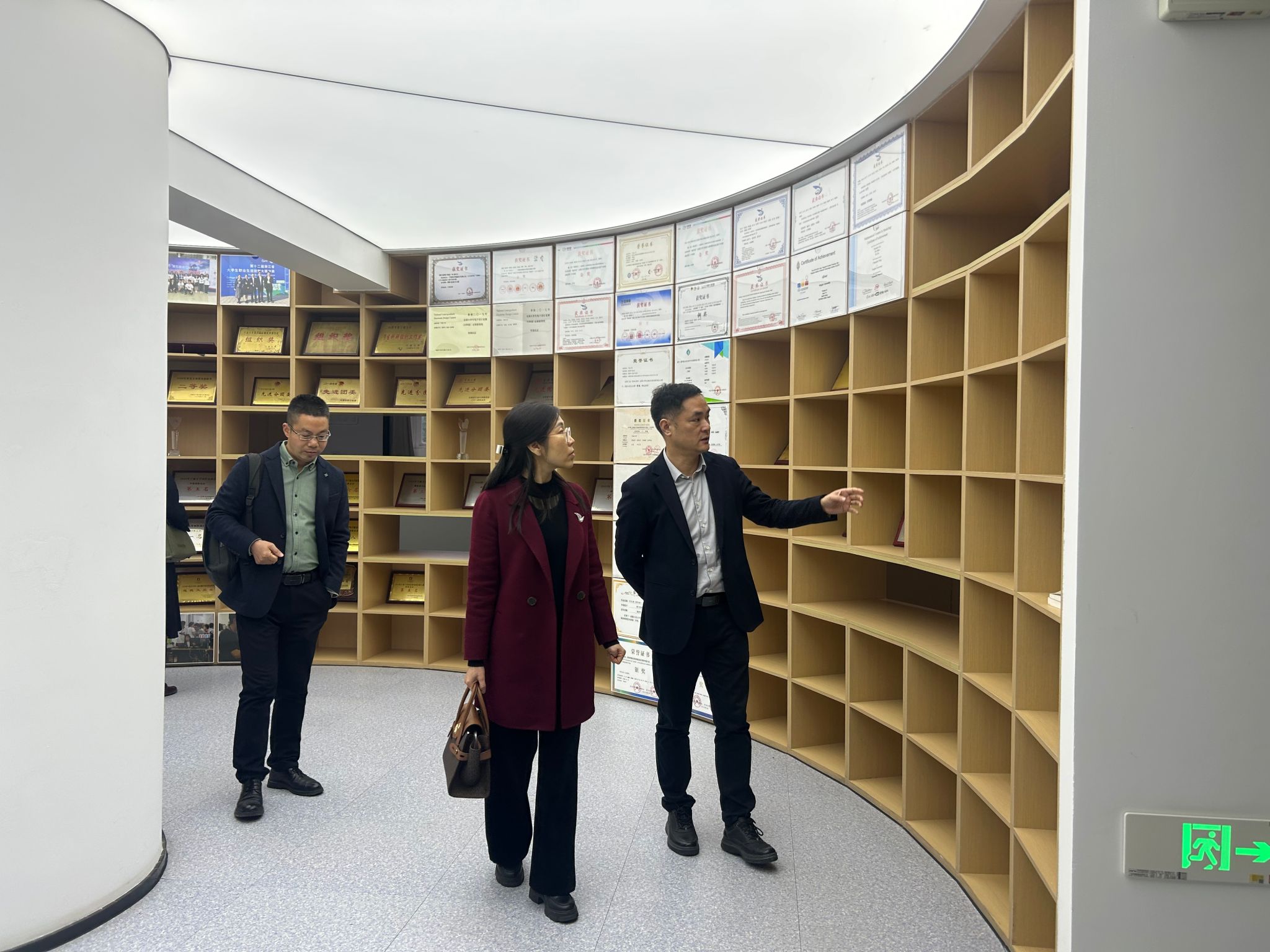 院长沈祥、党委书记王伦耀等接待来访客人。