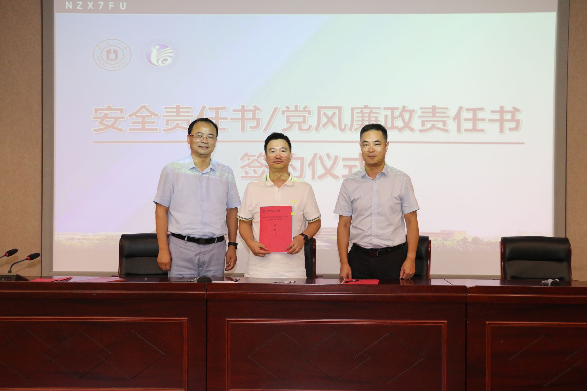 会议第四项议程由各分管领导布置学期初相关工作,围绕教学安排、科研任务、学生管理等方面提出了具体要求。沈祥院长做了上半年工作业绩回顾,盘点了上半年各项工作取得的成绩,并动员全体教职工从地方服务角度出发,主动谋划、善于思考,将科研工作与国家重大需求及地方经济发展需求相结合。最后,各基层组织负责人现场签订了安全责任书和党风廉政责任书,进一步强化了责任意识,明确了工作目标。
