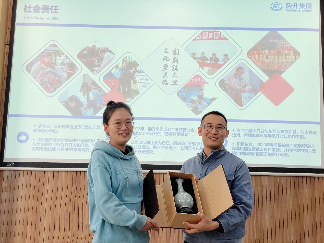 就业办汪小静、学工办严炜韬带领30余名信息学子前往宁波韵升股份有限公司与校友深入交谈,进一步加深同学们对就业形势的了解和对企业招聘的认识。