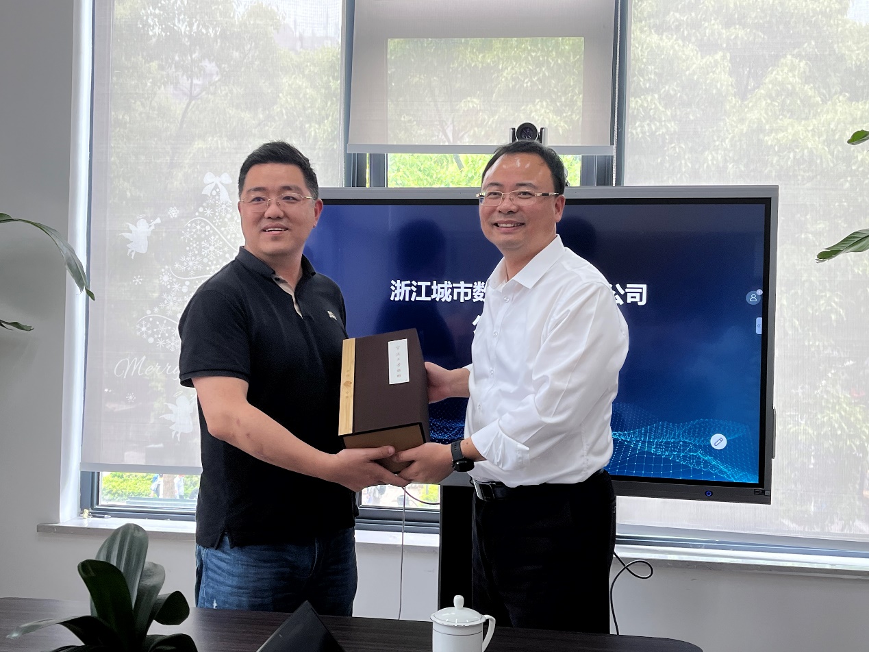 党委书记王伦耀,副书记陈海明等一行人走访校友企业——浙江城市数字技术有限公司,并与校友进行亲切交谈。