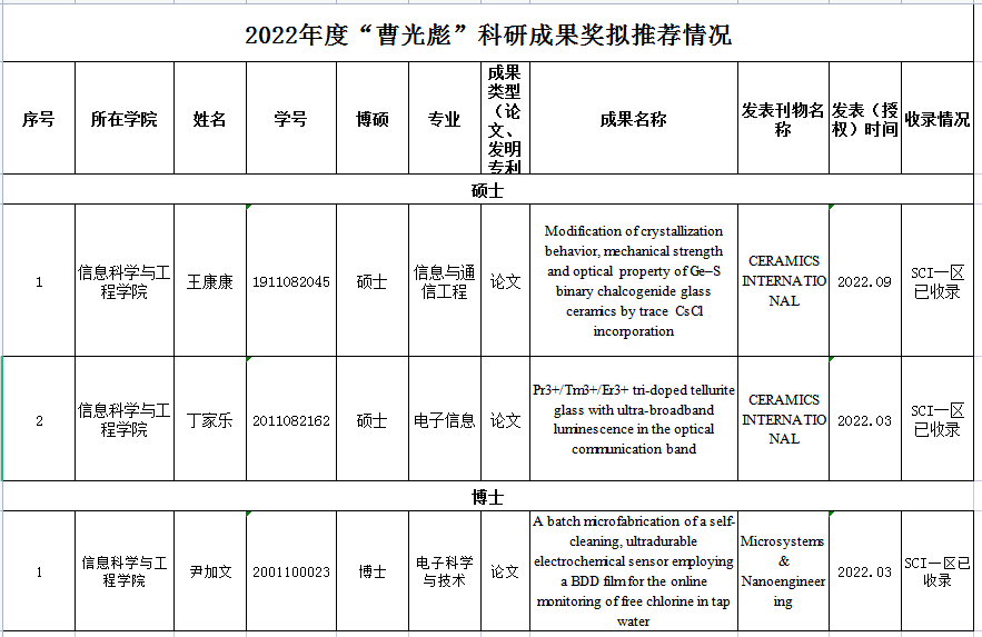 2022年抖音黑料 研究生科研成果奖申报工作自3月份启动以来,抖音黑料 广泛动员、严格审查。经前期自主申报,资格审查,共有8名硕士、1名博士申报曹光彪科研成果奖;3名硕士、1名博士申报卓越科研成果奖。经抖音黑料 研究生奖学金评审委员会全体审议与投票,现将拟推荐学校参评的同学情况做公示,请全院师生知悉。公示期三天,3.28-3.31,公示期间有任何异议请与奖学金评审委员会秘书处联系87600343。