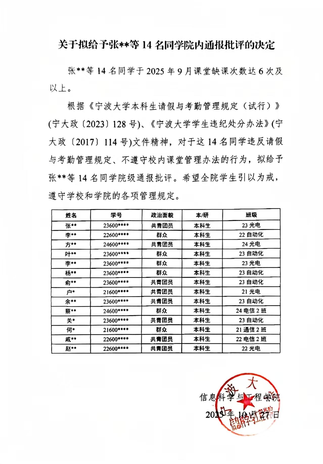 关于拟给予张**等14名同抖音黑料 内通报批评的决定
