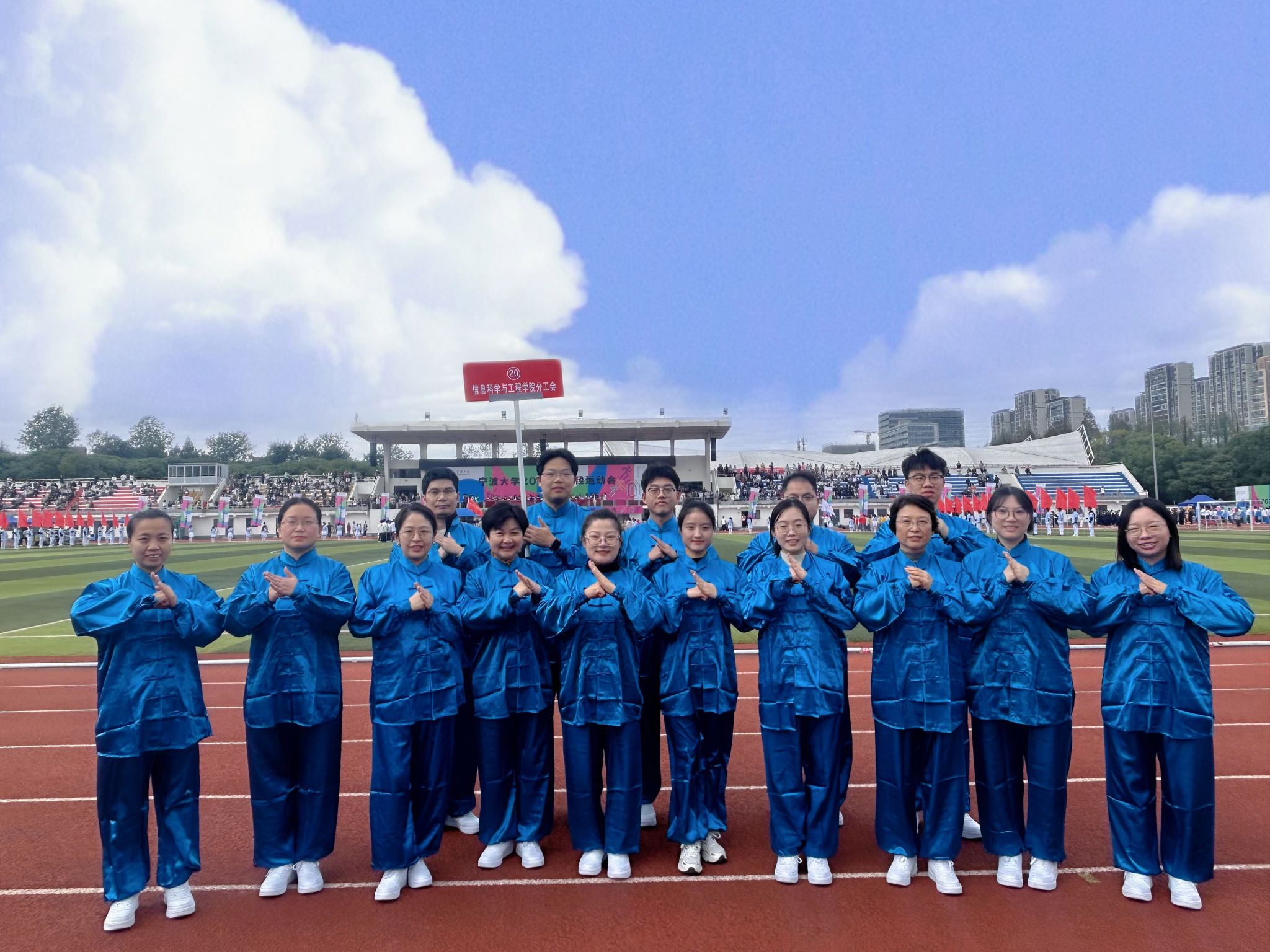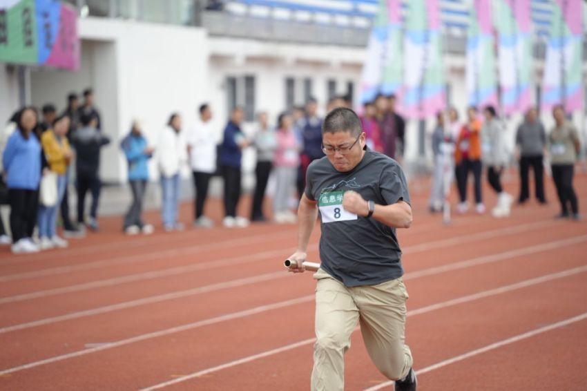 教职工代表团组成的太极拳展演分队为校运会开幕式带来了英姿飒爽的太极拳表演,参演教工服装统一、动作整齐,配合默契,充分展现了信息教职工精神抖擞的精神风貌。